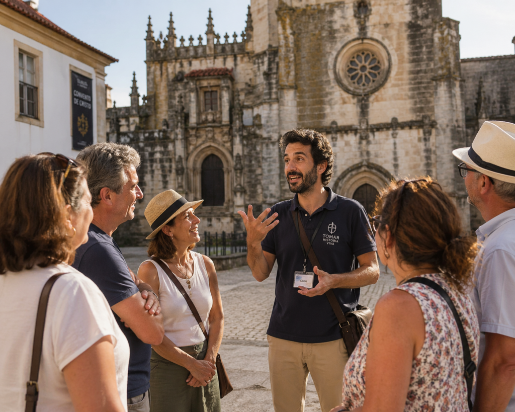 This is a story-driven walking tour through Tomar — led by a former UK actor turned storyteller. Not dates. Not dull facts.
